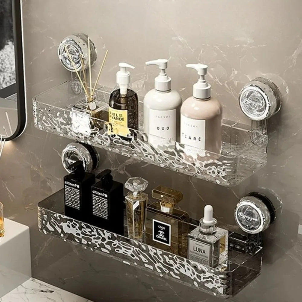 Étagère Murale à Ventouse – Transparente ou Grise | Sans Perçage