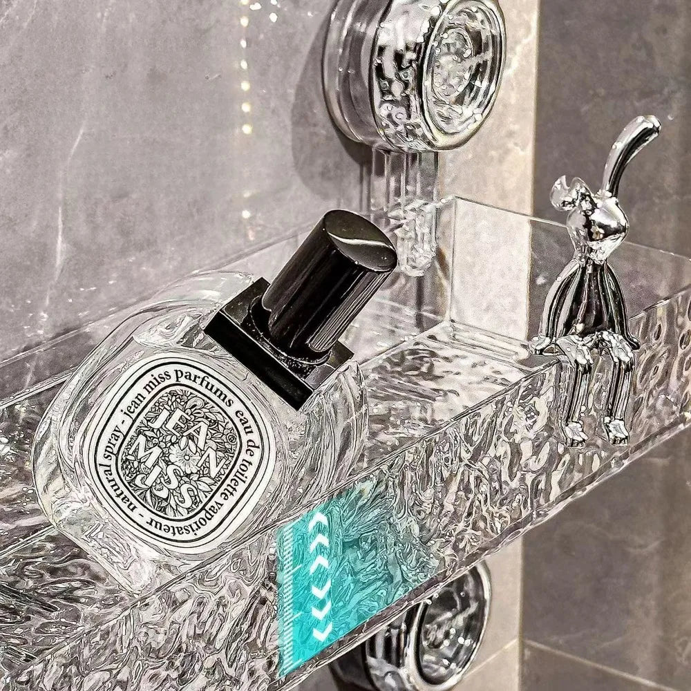 1 × étagère murale transparente avec ventouses (prête à l’emploi)